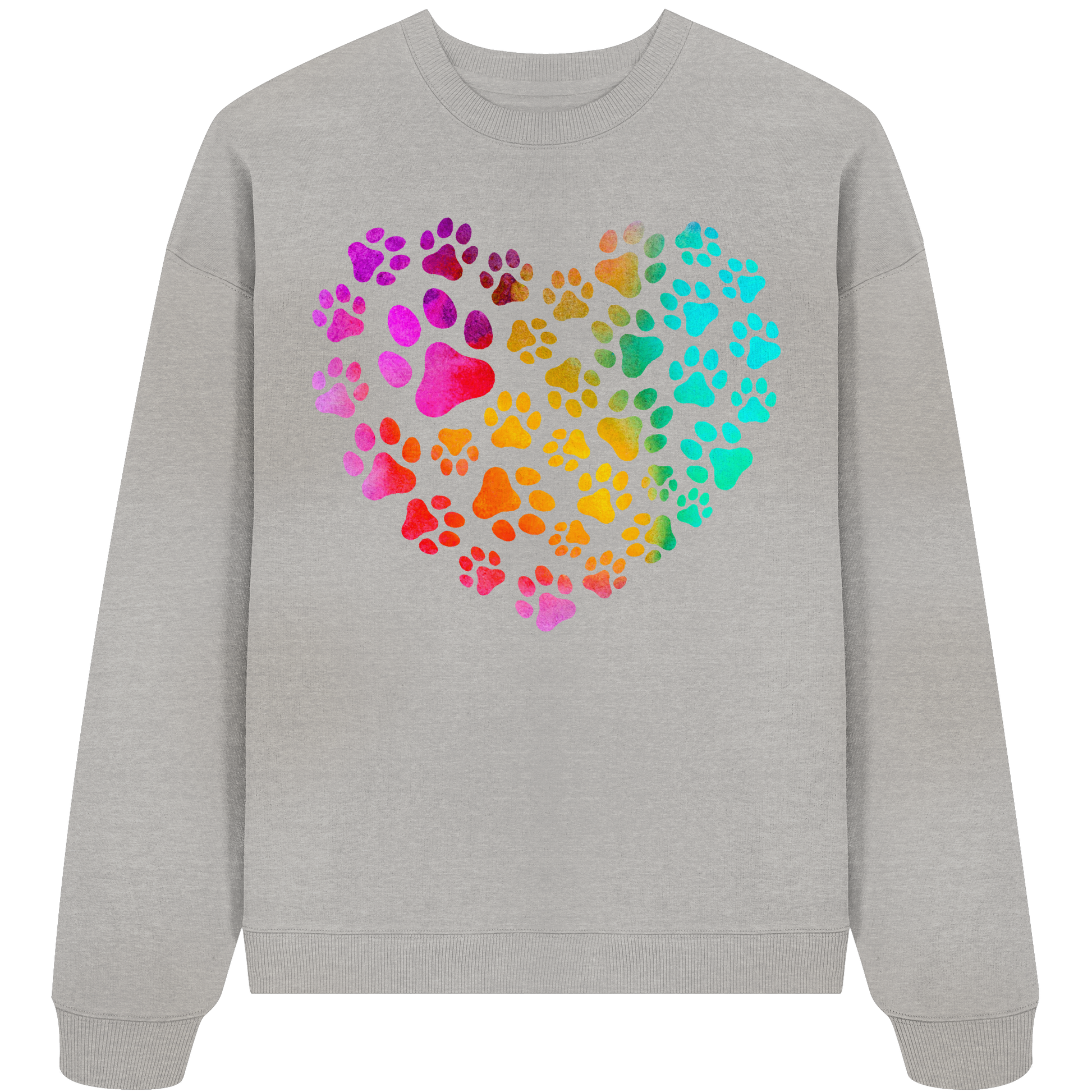 Bunte Pfoten in Herzform, beidseitig gedruckt - Organic Oversize Sweatshirt -