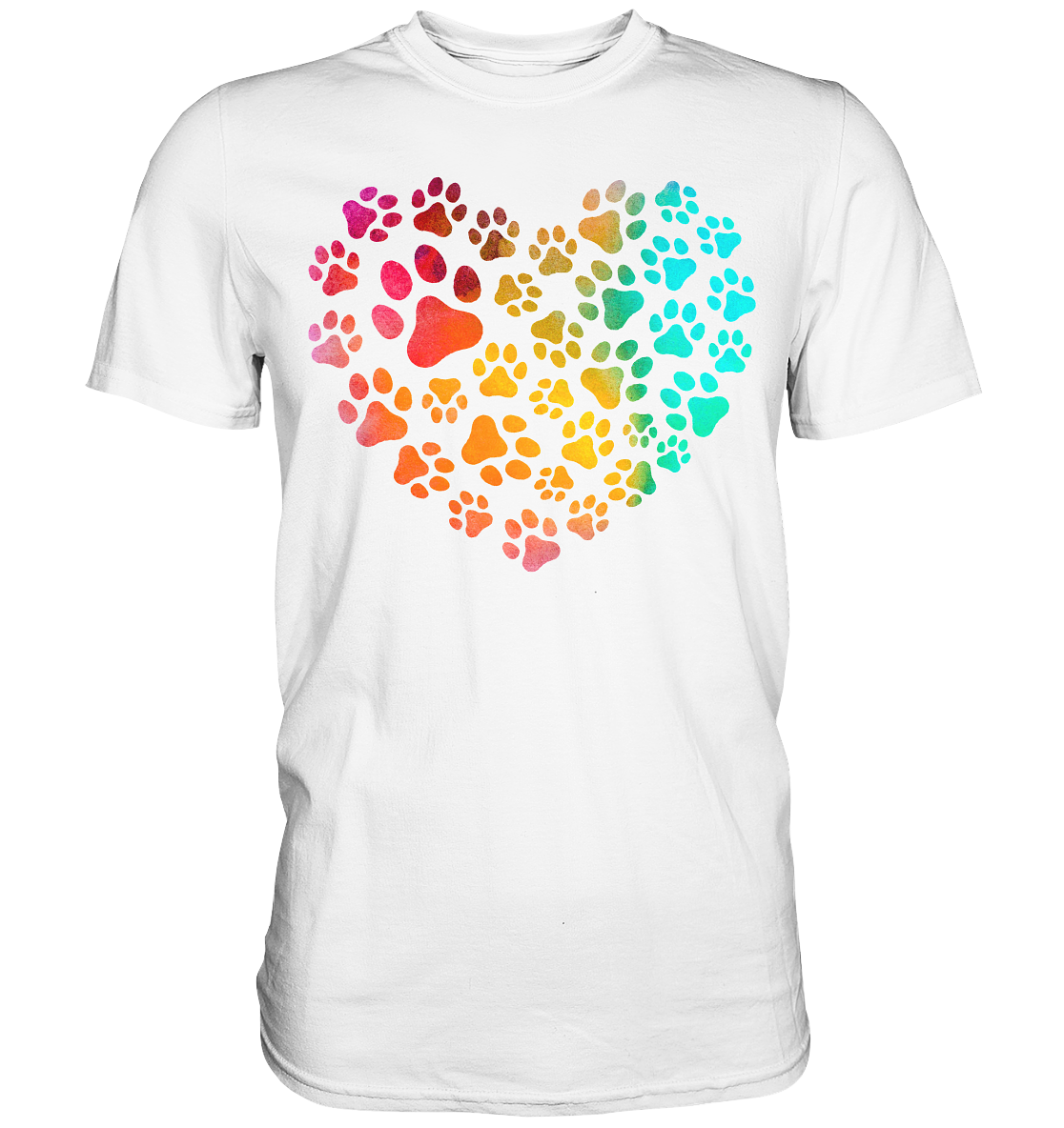 Bunte Pfoten in Herzform, beidseitig gedruckt - Premium Shirt -